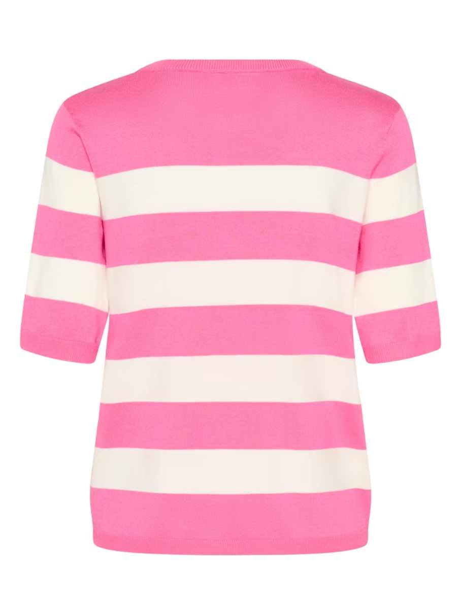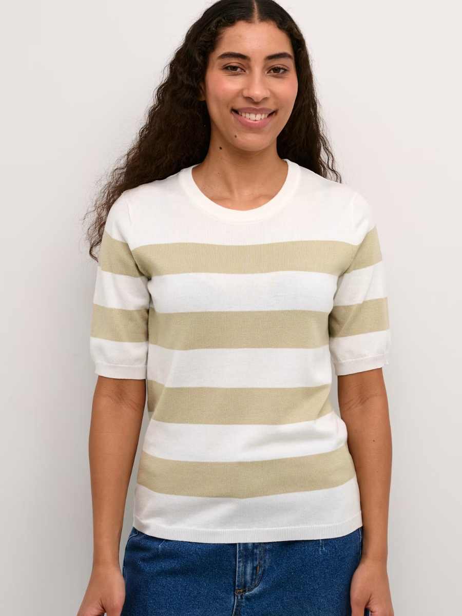 Kevyt ja miellyttävä viskoosi–nylonneule, joka tuntuu iholla pehmeältä ja hengittävältä. Ohut materiaali laskeutuu kauniisti ja tekee neuleesta mukavan käyttää ympäri vuoden – sellaisenaan tai jakun alla. Laadukas neulos säilyttää muotonsa ja näyttää hyvältä pitkään. Raikas raitakuosi tuo asuun ilmettä ja on helppo yhdistää niin farkkuihin kuin hameisiin. Täydellinen valinta arkeen ja vapaa-aikaan.