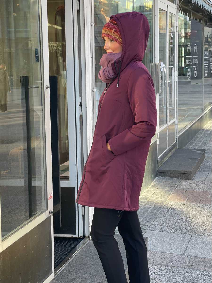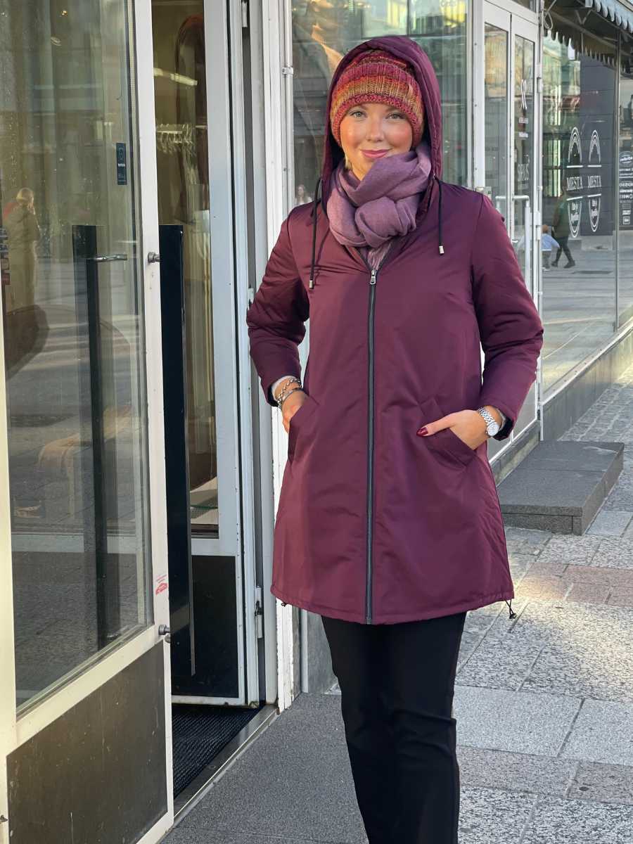 Kiva toppatakki burgundyn värissä.