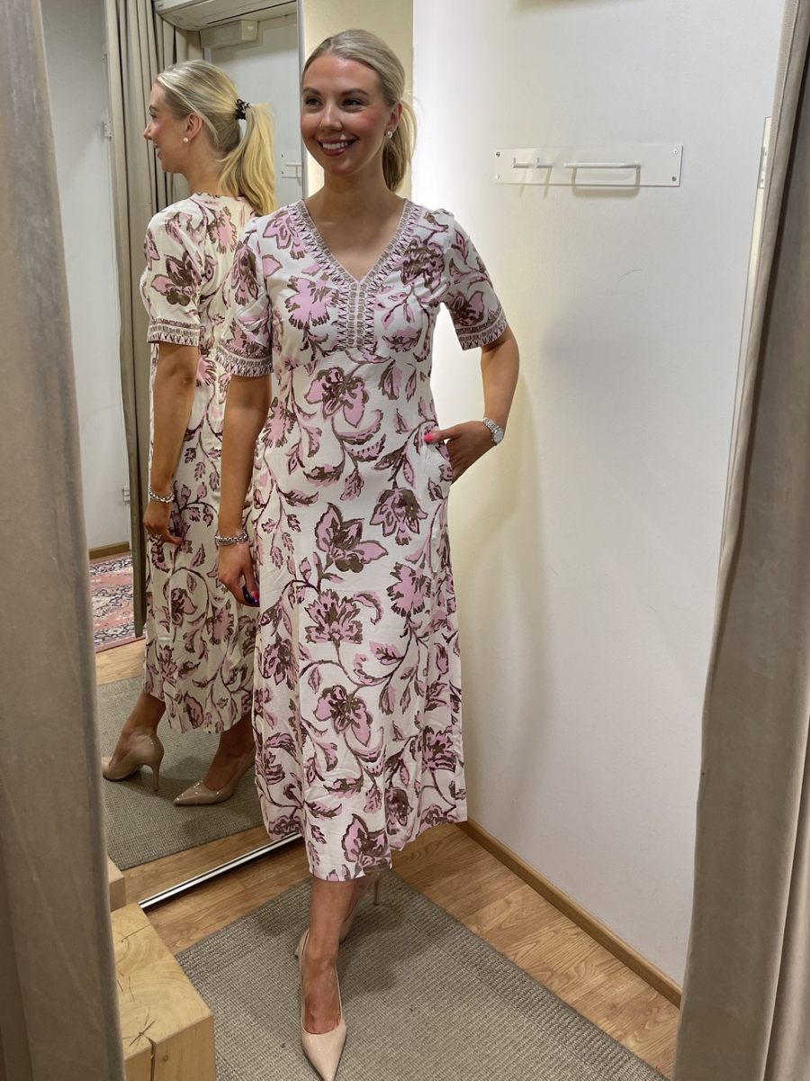 Cream Tiah mekko, Pink Flower