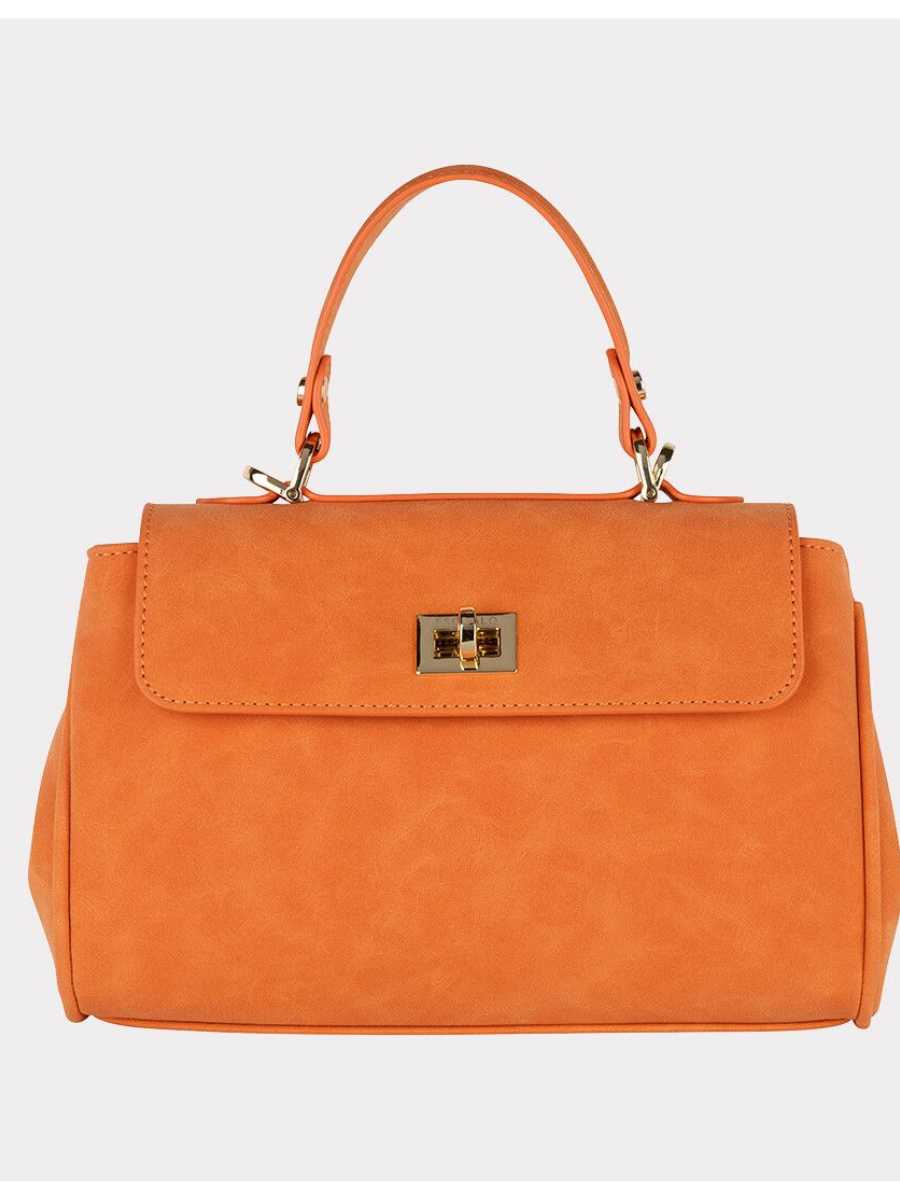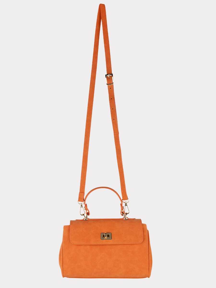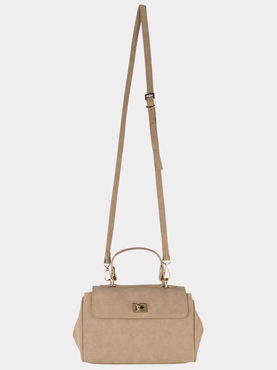 Nahkavaikutteinen laukku, joka on valmistettu kierrätetystä PU-materiaalista. Laukussa on läppäkiinnitys, mukana tuleva olkahihna sekä vetoketjullinen tasku takapuolella.