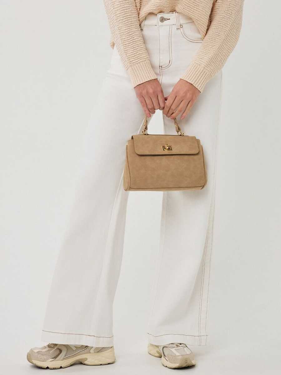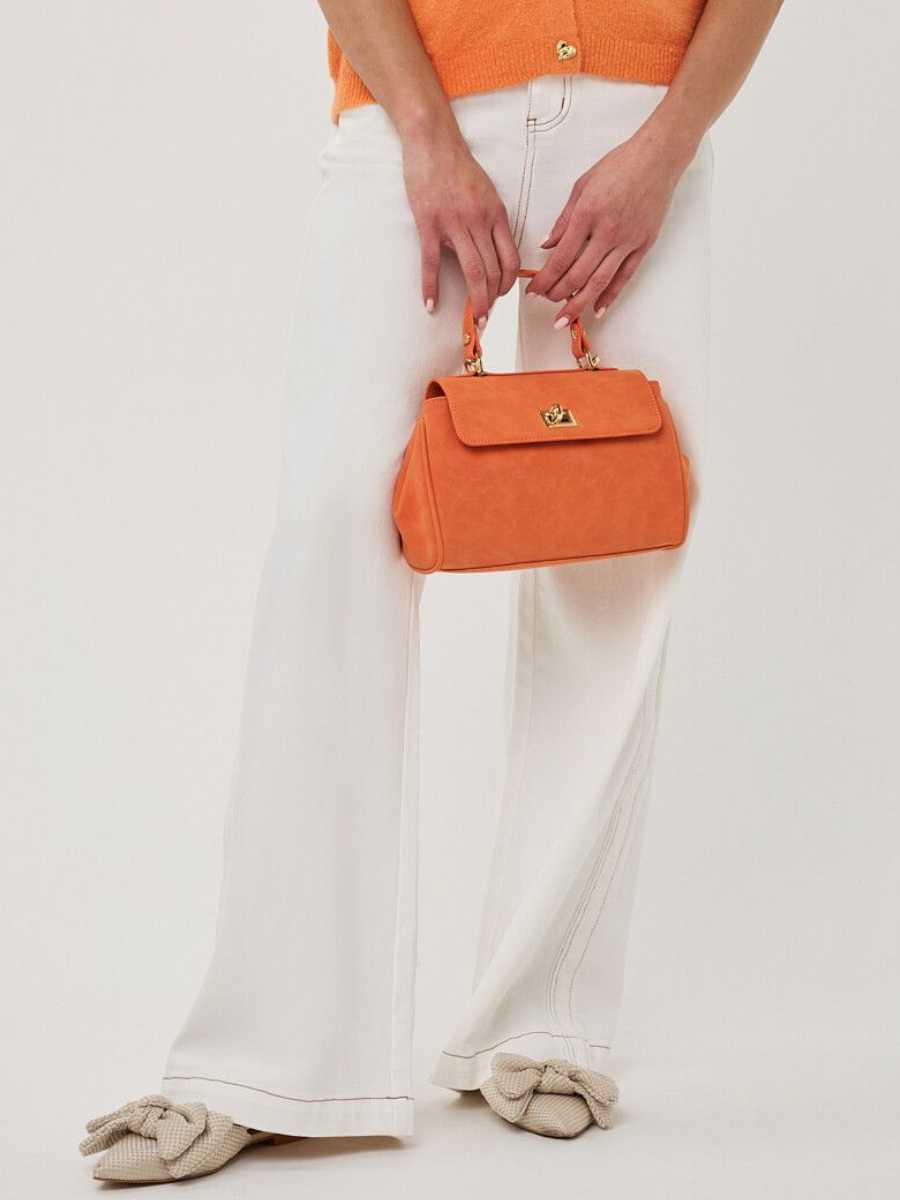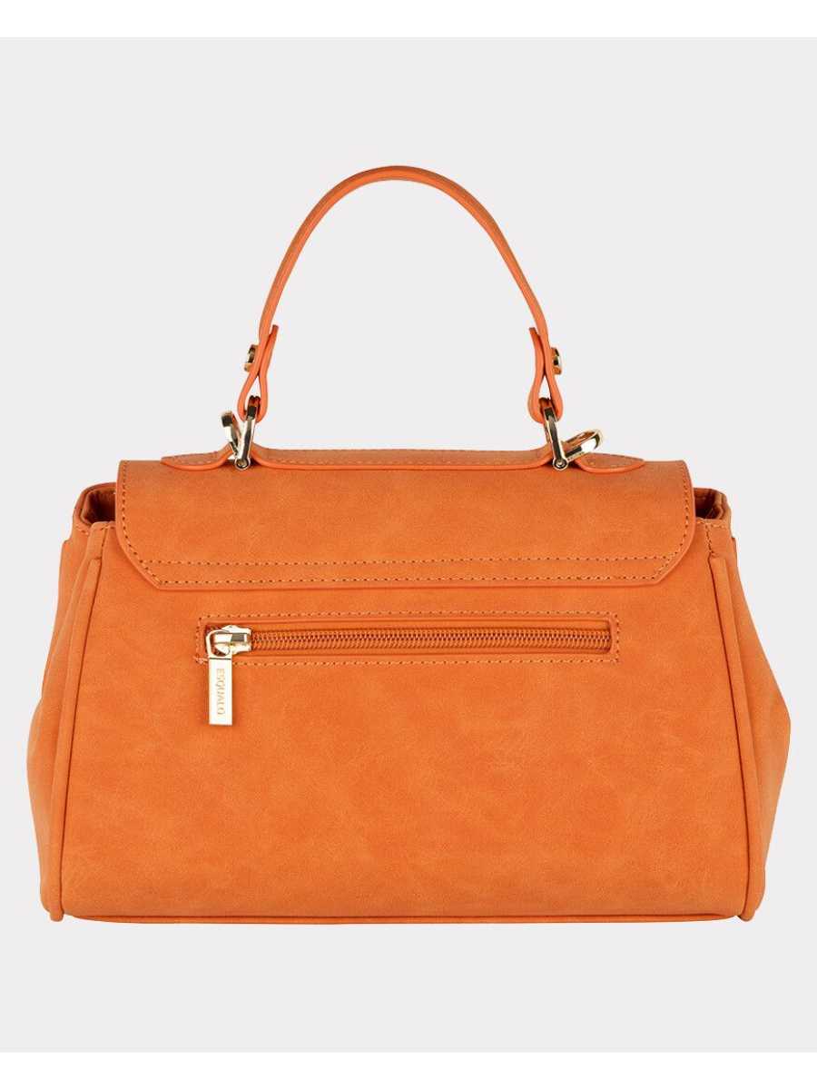 Nahkavaikutteinen laukku, joka on valmistettu kierrätetystä PU-materiaalista. Laukussa on läppäkiinnitys, mukana tuleva olkahihna sekä vetoketjullinen tasku takapuolella.