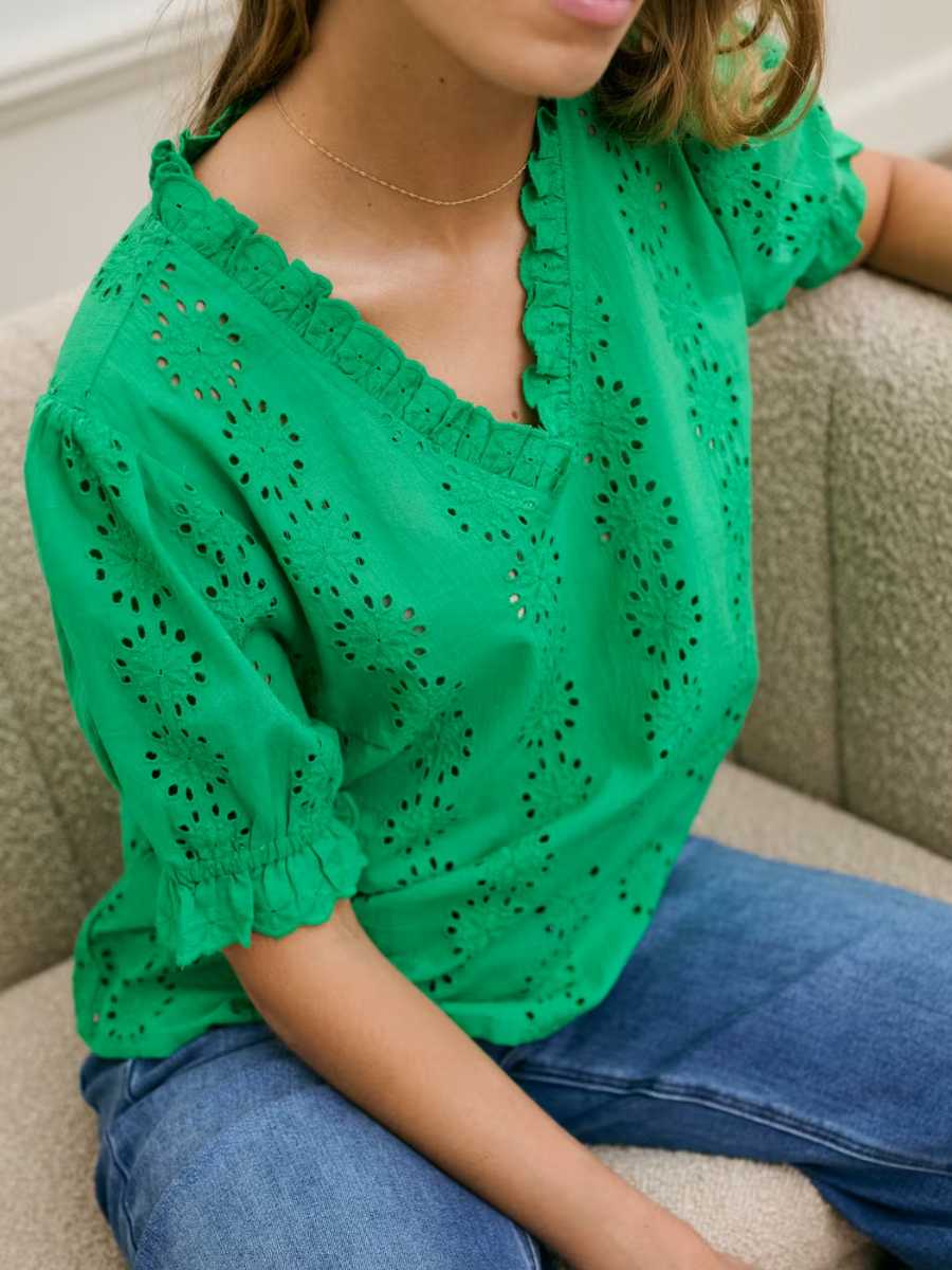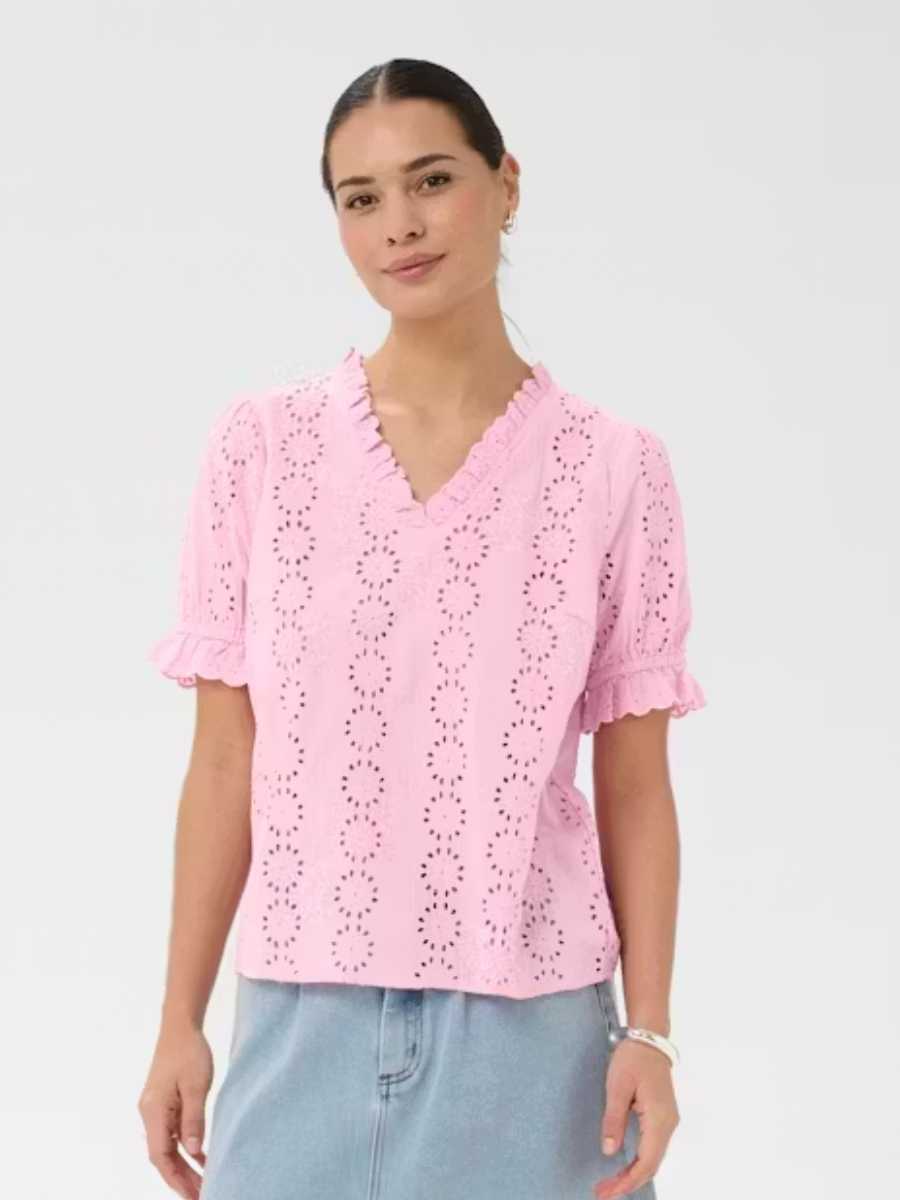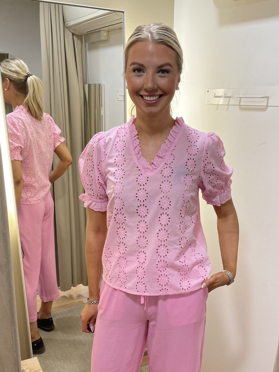 Kaffe Dona puuvillapusero, vaaleanpunainen ja vihreä