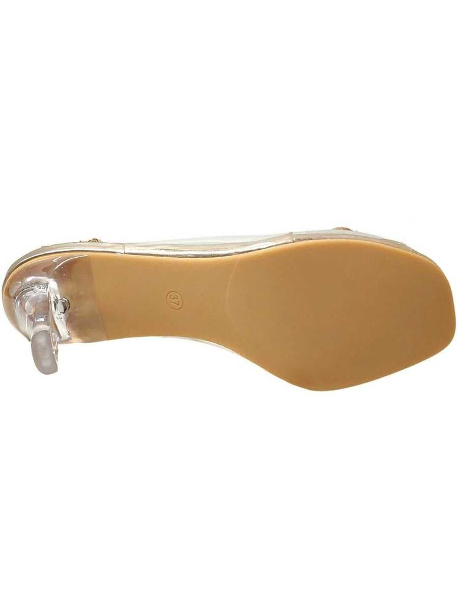 Läpinäkyvä korko viimeistelee kokonaisuuden ja antaa sille modernin, keijumaisen säväyksen. Koron korkeus on pohjallinen mukaan laskettuna noin 8 cm.