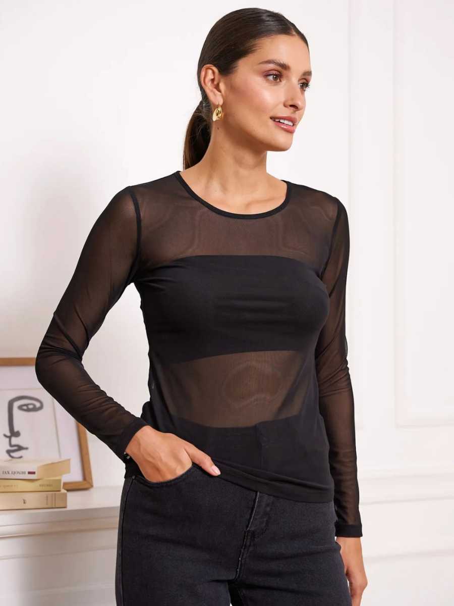 Ohut meshpusero sopii hyvin aluspaidaksi esimerkiksi lyhythihaisten neuleiden kanssa. Tai jos pusero kuultaa läpi, meshpusero peittää alla.