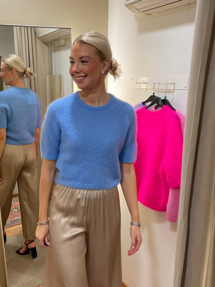 Pehmoinen ja ylellinen neule lyhyellä hihalla. Yksi koko 34-42