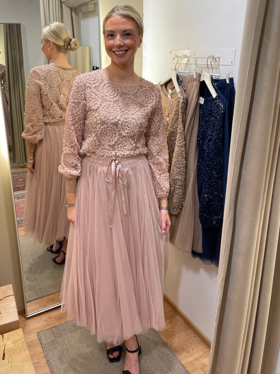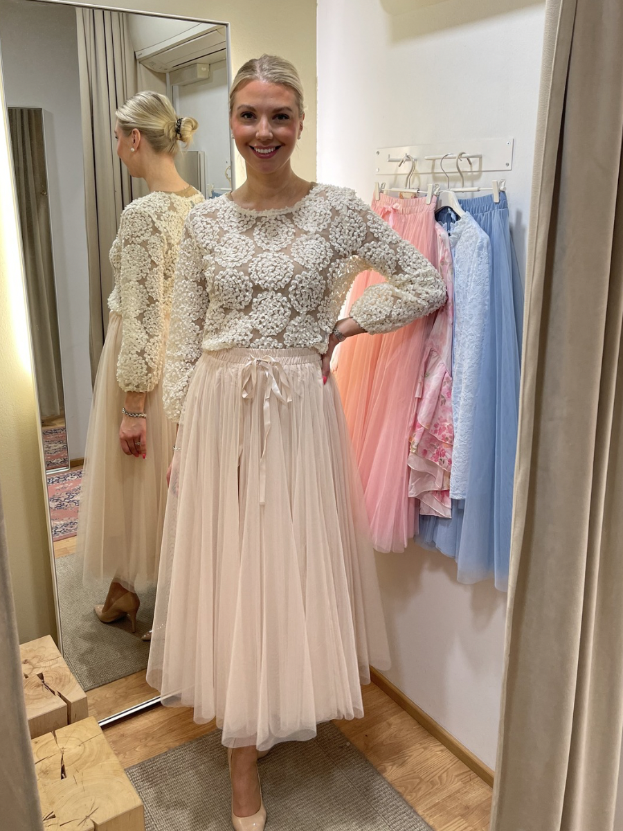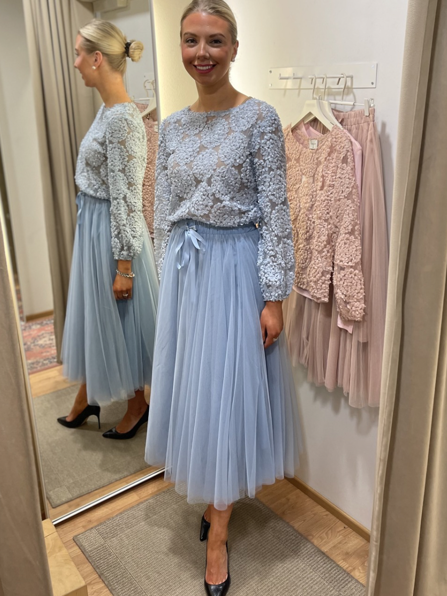Tämä tyllihame on täydellinen valinta, kun etsit yhdistelmää keveyttä, naisellisuutta ja monikäyttöisyyttä. Monikerroksinen, ilmava tylli liikkuu kauniisti mukanasi ja luo siluettiin pehmeää volyymia. Hameessa on runsaasti tylliä!